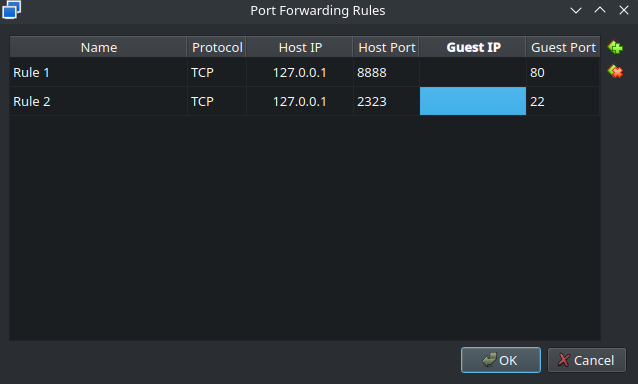 - v nastavení → network → port forwarding nastavit tohle