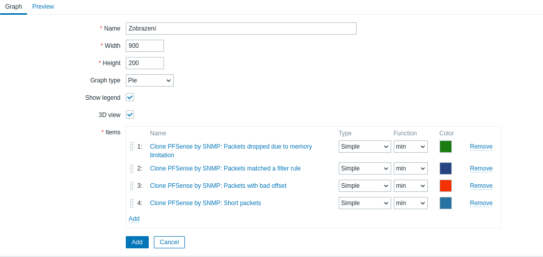 - v Monitoring → Hosts → pfsense-box - Graphs se za chvíli objeví grafíky :D