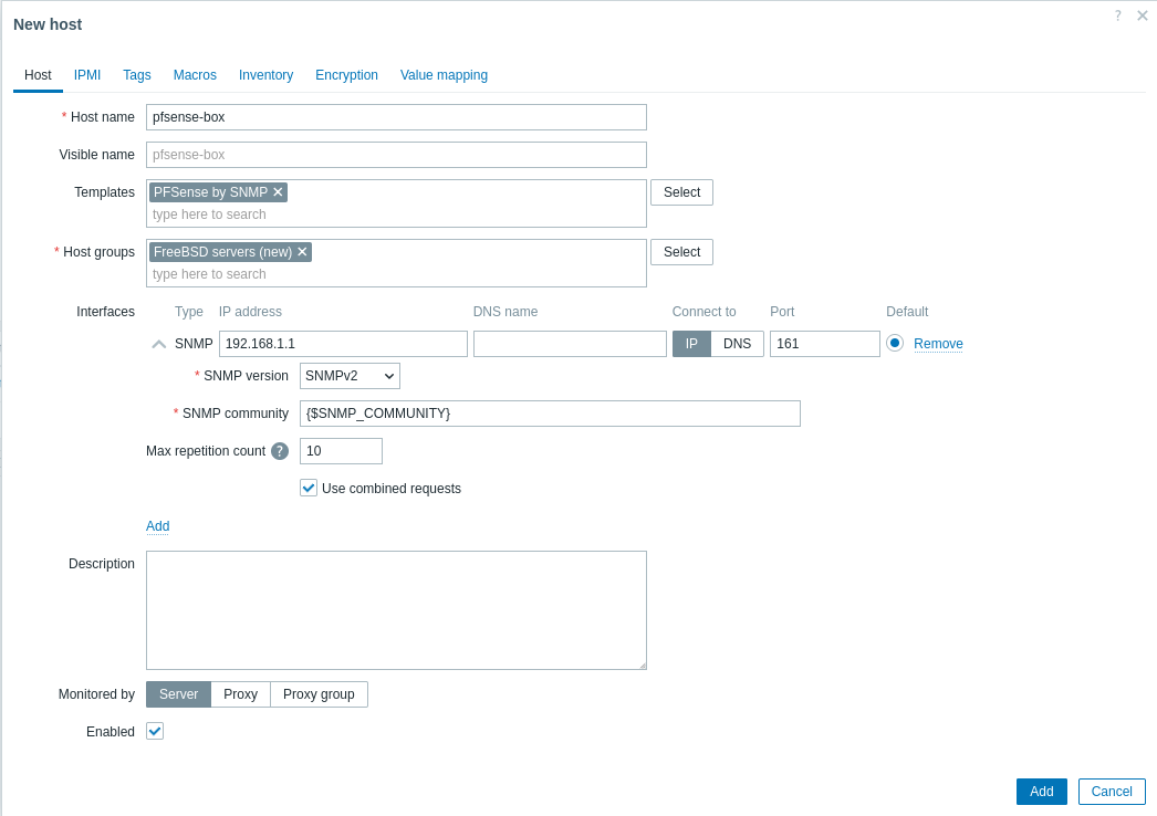 - web gui - Data collection → Hosts → Create host vpravo nahoře